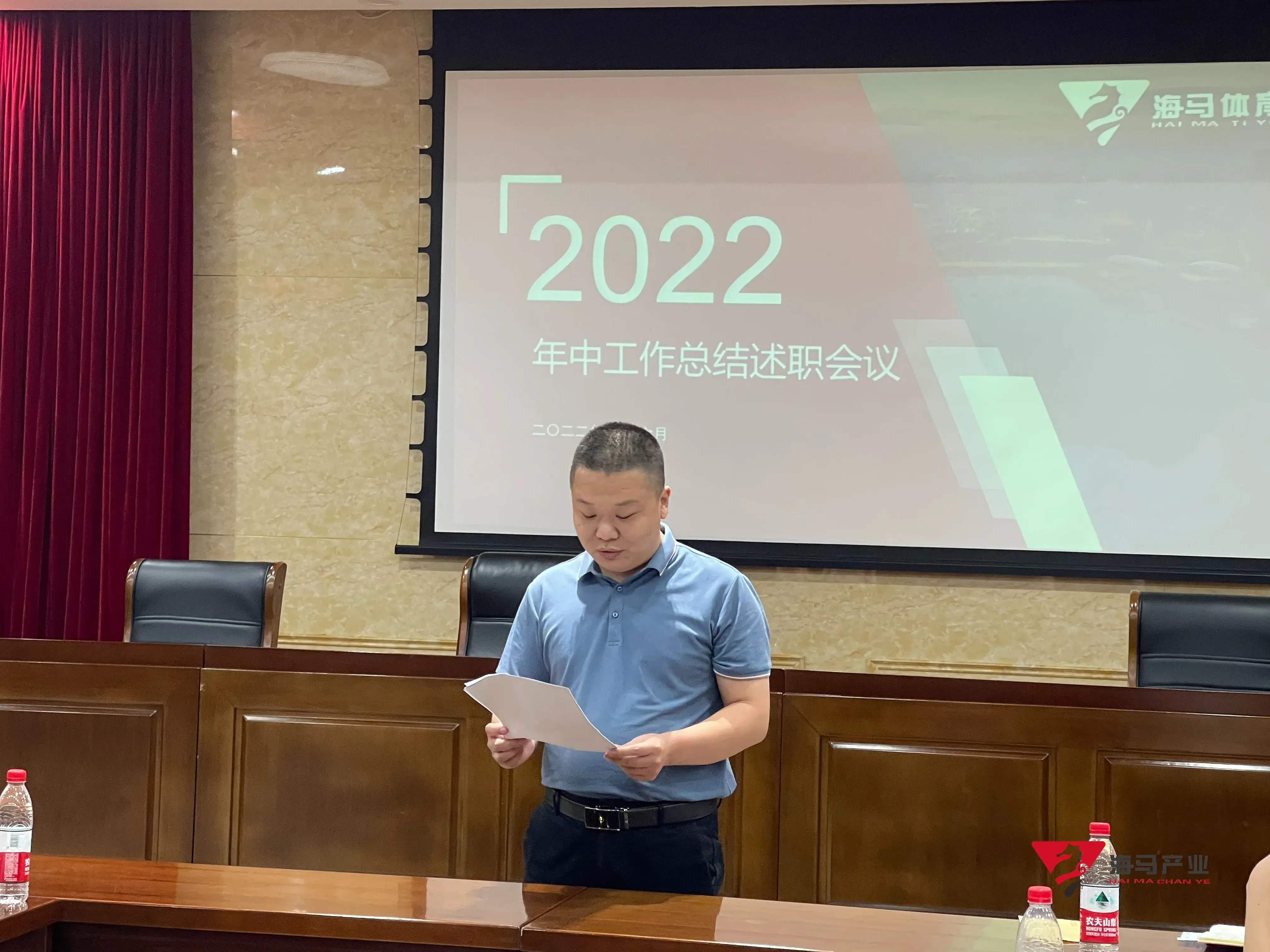 2022年6月29日下午,QY球友会文化产业集团在山东省体育中心二楼会议室召开年中工作总结述职会议,会议对上半年工作成果进行了总结汇报,并就下半年重点工作进行部署。总经理王海民出席了本次会议。会议由综合管理部负责人王永健主持。